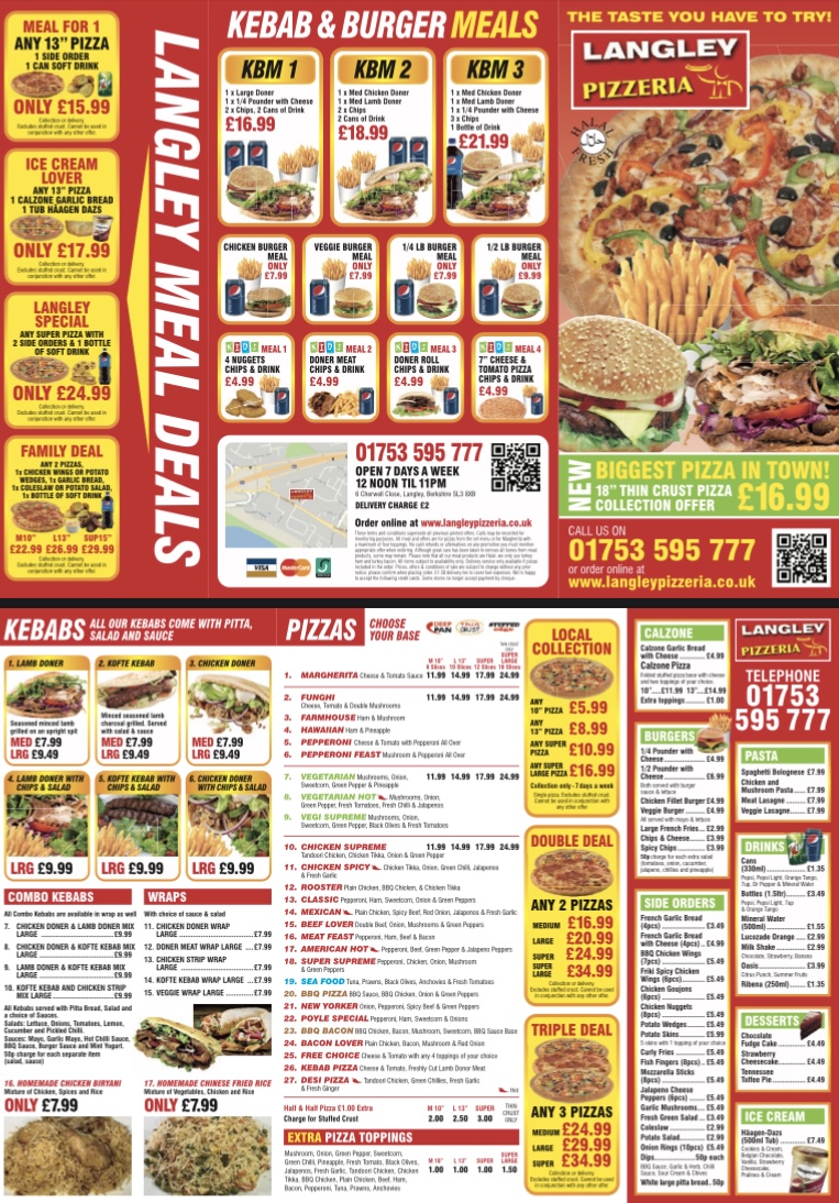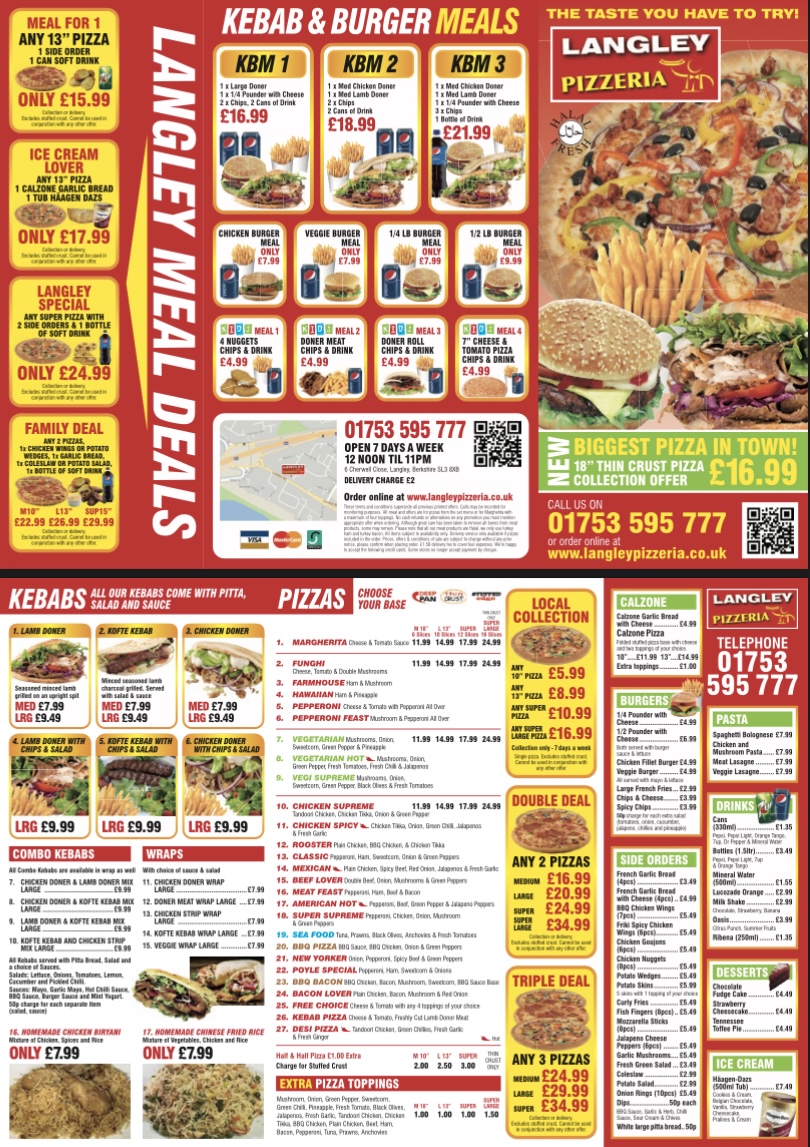In conclusion, Langley Pizzeria’s menu offers a wide variety of delicious and satisfying meals. With its combination of great food, excellent service, and inviting atmosphere, it’s a top choice for anyone in the Slough area looking for a quality Italian meal.